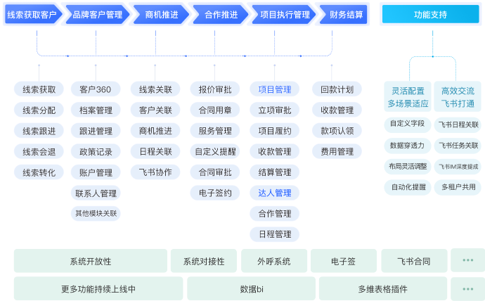 不是單一的CRM/項目管理,更多的是基于業務現狀搭建適合企業「業財一體」的業務流程。