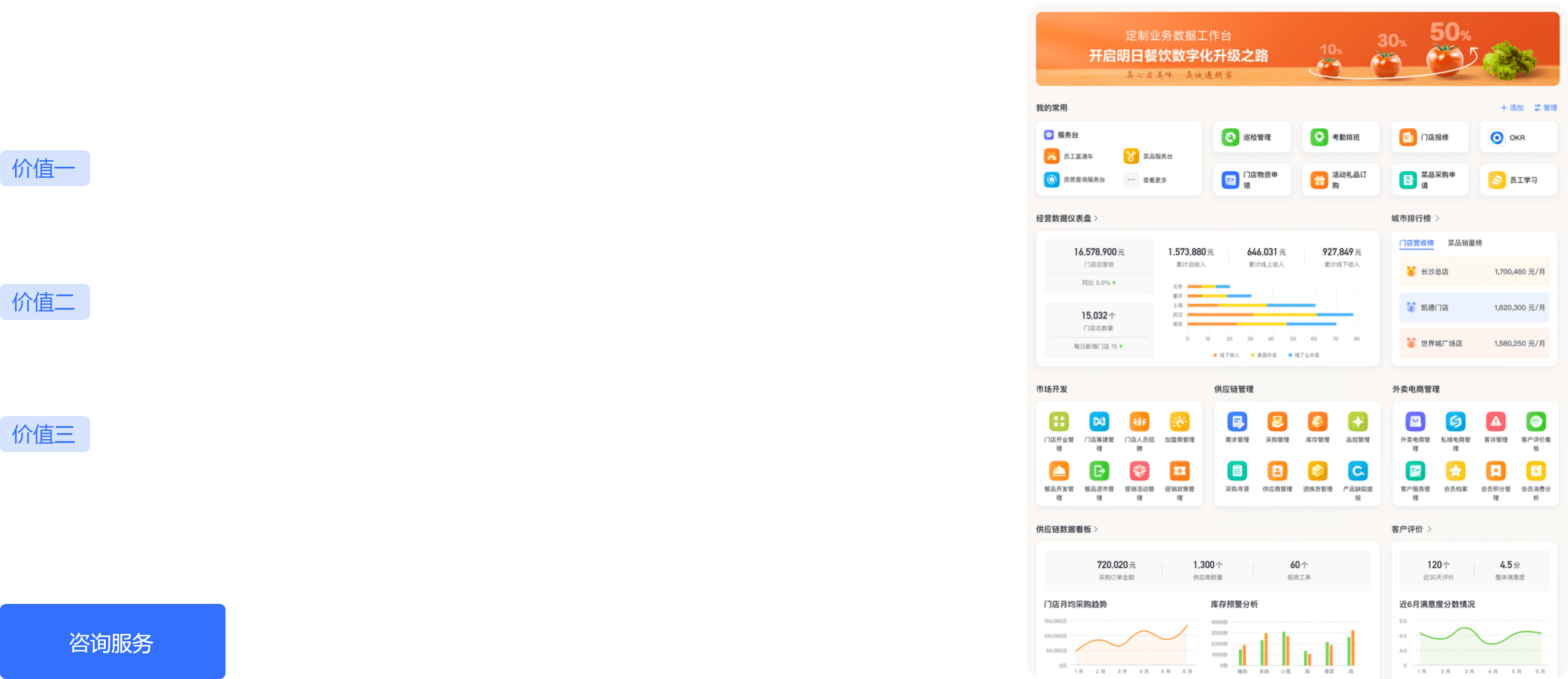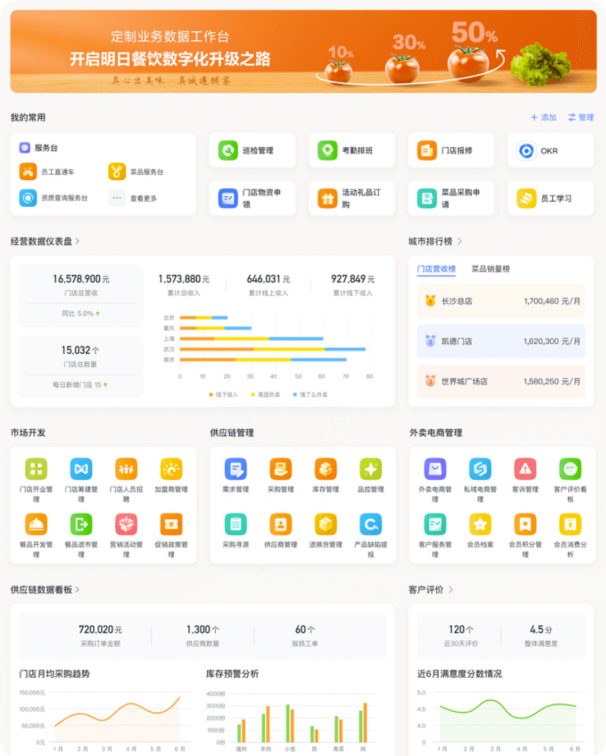 作為企業數字化的好幫手,飛書現推出餐飲行業最佳實踐秘籍餐飲行業企業未來數字總部,餐飲定制化工作臺,真正讓工具釋放生產力,讓數據高效流轉~